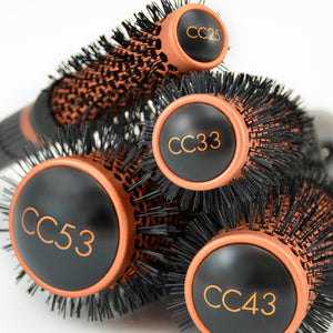 La serie CC de cepillos térmicos, diseñados para ofrecer un rendimiento excepcional y cuidado óptimo del cabello.