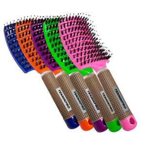 El cepillo de paleta curva Teknikpro, viene con cerdas plásticas y de jabalí.