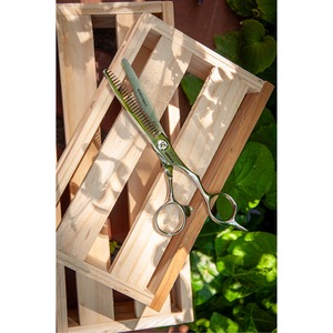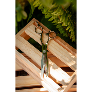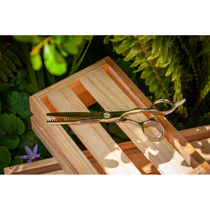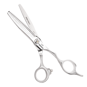Lo más notable de esta tijera es su filo de esculpir, que cuenta con una extraordinaria cantidad de 27 dientes individuales, cada uno con una punta filosa y sobresaliente. Este innovador diseño proporciona un agarre superior del cabello, facilitando cortes más limpios, precisos y definidos.