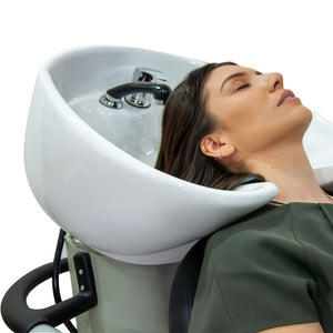 ¡El Lavapelos Future es la opción ideal para tu salón de belleza! Con su cerámica profunda en color blanco y grifería cromada con mono mando para agua caliente y fría, este lavapelos es elegante y funcional.