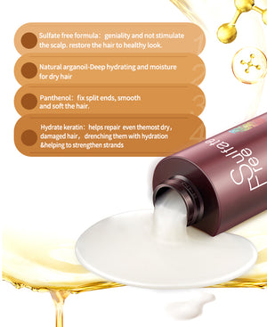 Acondicionador Sin Sulfato Con Aceite de Argán cuyo aceite es honrado como el más valioso que se extrae de la planta. Puede penetrar instantáneamente en su cabello y proporcionar la nutrición y la humedad a tiempo, lo que ayuda a tu cabello a suavizar las puntas abiertas y recuperar efectivamente brillo y elasticidad, haciéndolo mas manejable.