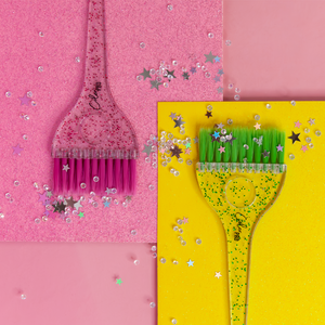 Los pinceles aplicadores Color Pro, con cerdas frondosas y resistenstes de 6cm con 11 ramilletes llenos de del color que van a tono con la linea glitter, añaden un toque de diversión y estilo a tu kit de herramientas. Disponibles en rosa y verde, estos pinceles no solo son funcionales, sino que también te permiten personalizar tu espacio de trabajo. cerdas