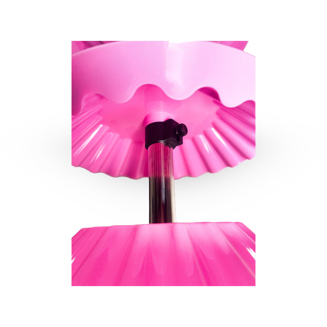 • Medidas y Capacidades:(Diametro 34,5cm) (Altura 97cm) (Radio 34,5cm)de 5 niveles cada nivel soporta 20 esmaltes por un total 100 esmaltes por los 5 niveles. de plasticos
