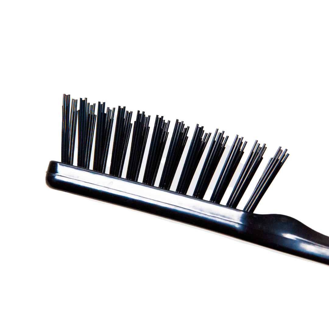 Remoción Total de Residuos: Sus cerdas rígidas y delgadas están dispuestas para penetrar hasta la base de cualquier cepillo (de paleta, redondo o esqueleto), extrayendo el cabello acumulado sin dañar la base neumática ni las cerdas de la herramienta principal.