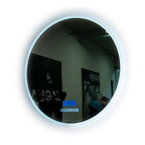 Innovador espejo LED de muralla, ideal para tu salón y/o estación de trabajo, dónde puedes conectar tu dispositivo para reproducir música o contestar tus llamadas. Pantalla informativa que indica hora y temperatura.