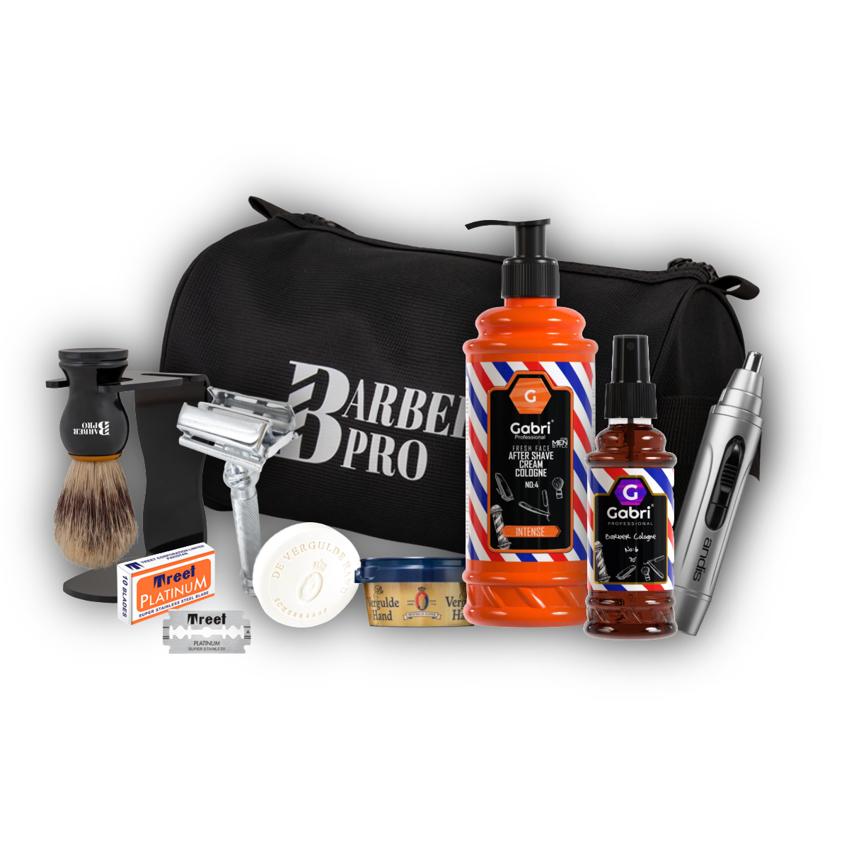 Ideal para Viajes: Todo el contenido se guarda perfectamente en el elegante estuche BARBER PRO.