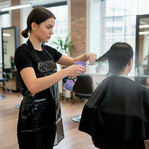 Diseñada específicamente para las exigencias de la peluquería, barbería y estética, la Pechera Smoke Black Translucid es la herramienta esencial para proteger tu ropa durante cortes de cabello, servicios de coloración y trabajos en el lavapelo. Su material técnico ofrece una tonalidad negra traslúcida con matices café o grisáceos, logrando una estética minimalista y moderna que se adapta a cualquier uniforme profesional o a la ropa que lleves puesta.