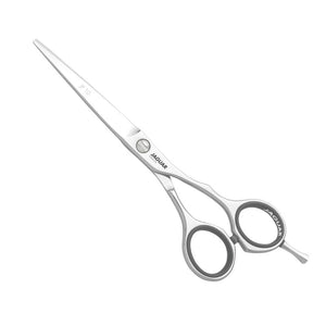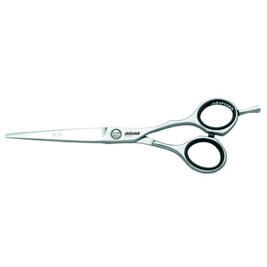 Tijera Filo Navaja Jaguar JP 10 de acero inoxidable, semiergonómica y offset para mayor comodidad al momento de cortar.