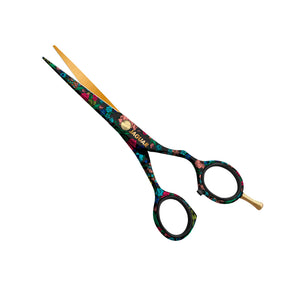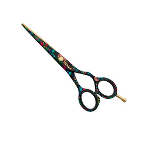 Las tijeras de peluquería JAGUAR MOONLIGHT GARDEN de tamaño 5,5" muestran un colorido arreglo floral sobre un fondo negro profundo. El diseño especial de la colección JaguArt "Flower Sensation" se inspiró en las tendencias de la moda floral. Con todas las tijeras de peluquería de la colección "Flower Sensation", también recibirás un collar de gargantilla de moda con un colgante floral. JaguArt no solo le ofrece una gran selección dediseños de tijera individuales, sino que el revestimiento duradero de las tijeras para el cabello también proporciona protección contra la alergia al níquel. JaguArt te ofrece diseños de tijera coloridos y decorativos. Aquí hay algo para todos los gustos.